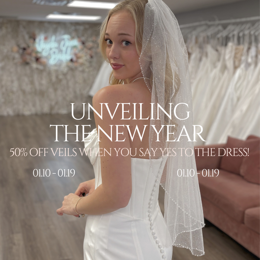 Step into the New Year with a little extra magic 🤍 Join us for Unveiling the New Year, a special bridal event celebrating fresh beginnings, dream dresses, and the perfect finishing touch. Brides who say YES to their dress during the event will receive 50% off their veil, our gift to you as you complete your bridal look ✨ Cheers to new chapters, beautiful gowns, and unforgettable yes moments 🥂👰♀️💍