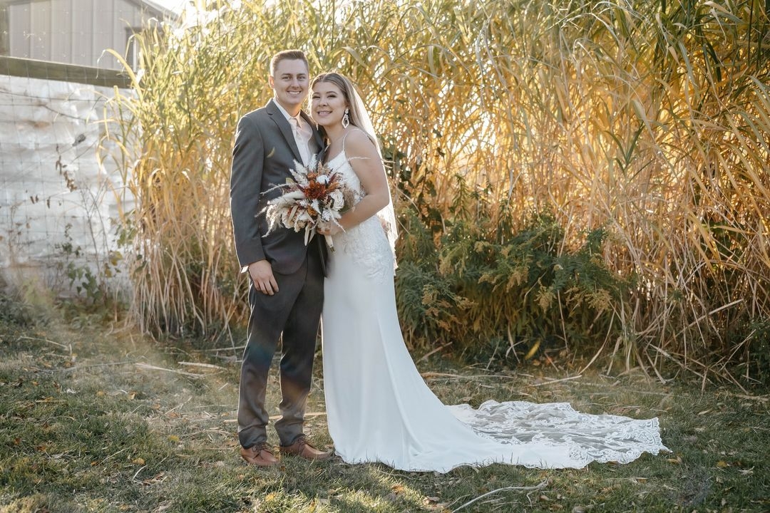 Parker and I met by him messaging me on Instagram, so romantic right. Our first date was a frozen yogurt place. Parker was my first real” boyfriend. He just seemed like the perfect match for me. We were visiting my brother in Washington with my parents in June of 2021. We were hiking at Mount Rainier National Park. My dad pointed something out up on the mountain and when I turned around Parker was down on one knee. I was truly shocked. It was the most perfect proposal I could ask for. We had the most perfect fall day I could imagine for our wedding. I cried like a baby walking down the aisle. We spent the day surrounded by our favorite people. I had such an amazing experience with Vayda Jane! I was blessed enough to win their anniversary give away and got $1,000 off my wedding dress. They did such a great job of turning wedding dress shopping into such an experience. I felt so special and truly found the perfect dress for me!"
