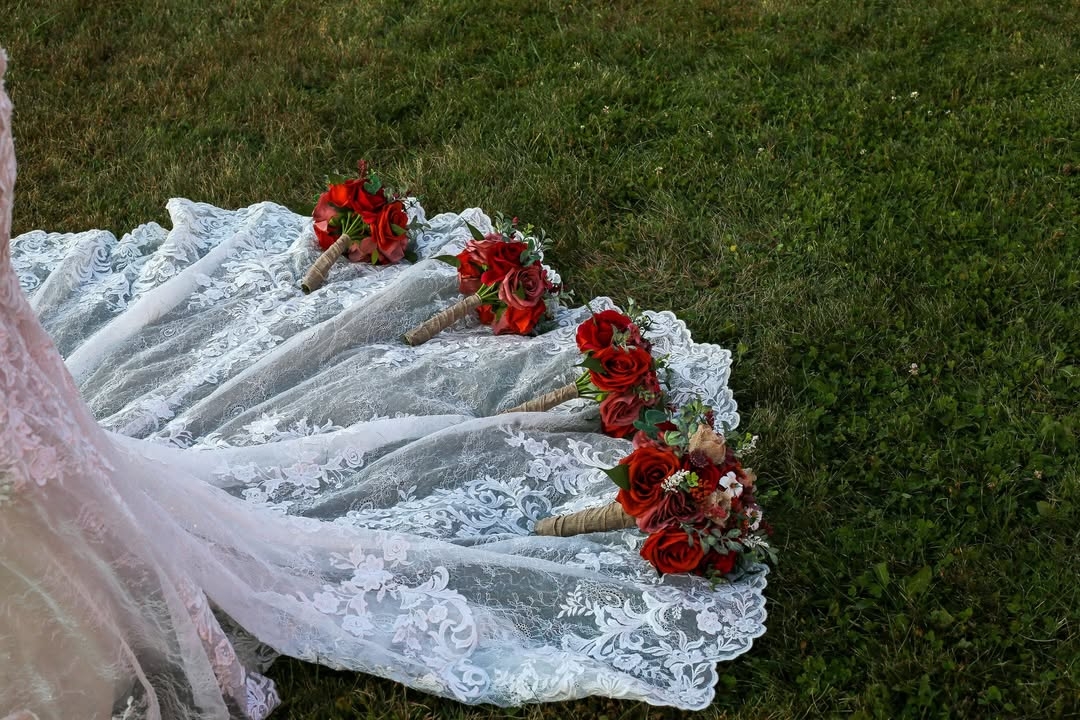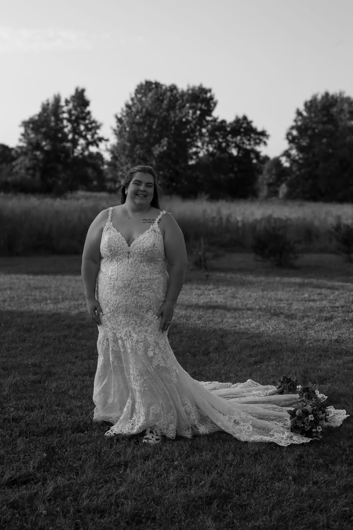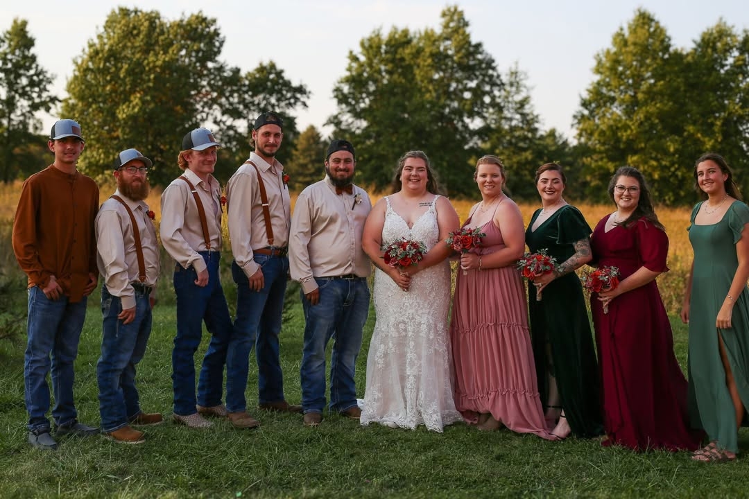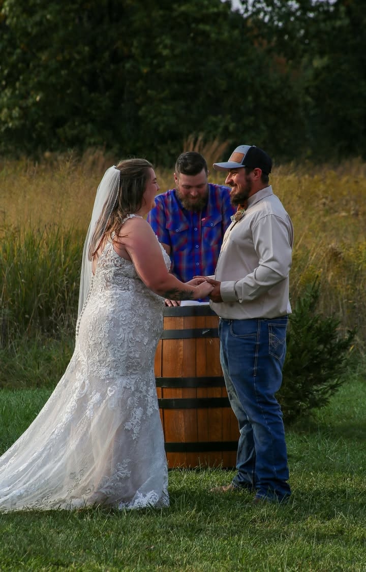 We went to school together, starting all the way back to grade school. However we didn’t become best friends until junior high. But didn’t start dating until 5 years ago when we decided to give each other a chance. We didn’t have a big proposal because I don’t like being the center of attention 😂. We were having a movie night with our daughter (the week of my birthday) when he had our daughter bring me a present and while I opened it he got down on one knee and asked if I would marry him when I opened the ring box! Of course I said yes! Our wedding was perfect! The weather was beautiful. We had a small wedding with our close family and friends by our sides. I had my older brother marry us so it made the day even more special! It was a simple sweet ceremony outside followed by the best dances moves for the reception.”